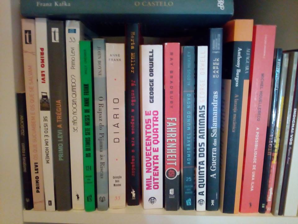 E acabamos por transformar duas estantes em três estantes, cortámos, pintámos (além da questão estética, precisavam do tratamento para não acumularem tanto pó). Cortámos e pintámos é como quem diz, cortou o meu pai, pintou o meu marido.